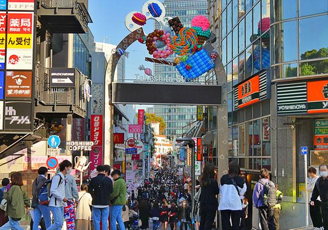 若者向けの個性的なファッションや流行の店が多数並ぶ竹下通りも渋谷(原宿駅)にあります。