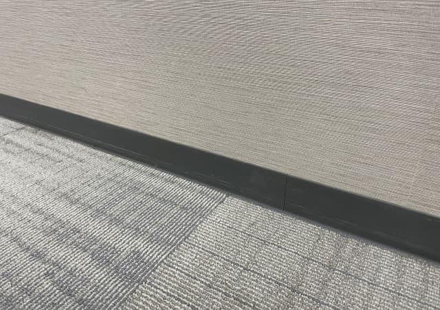 壁と床はぴったりくっ付けずに、あえて隙間を空けて施工しています。これは隙間なく施工することが困難であることと、壁や床の建材が温度や湿度によって伸縮するため、あえて「逃げしろ」を設けているためです。逃げしろがないと壁や床がたわんだりひび割れたりする原因になります。