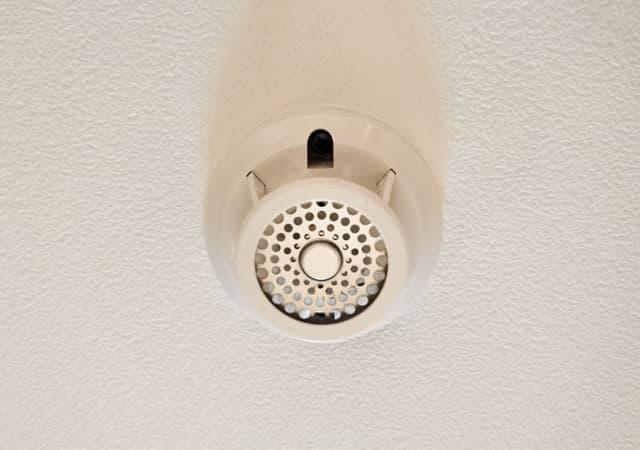 火災による熱や煙を感知すると、警報ベルなどで建物内の人に知らせてくれる自動火災報知器。飲食店では一般的な基準で延べ面積300平方メートル以上、地階または無窓階なら床面積100平方メートル以上の店舗が対象ですが、スプリンクラー設備と同じく11階以上の階にある店舗はすべて設置の義務があります。